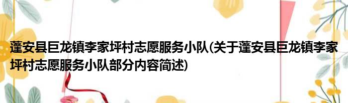 蓬安县巨龙镇李家坪村志愿服务小队(关于蓬安县巨龙镇李家坪村志愿服务小队部分内容简述)