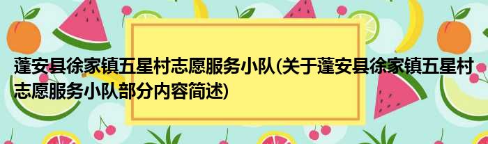 蓬安县徐家镇五星村志愿服务小队(关于蓬安县徐家镇五星村志愿服务小队部分内容简述)