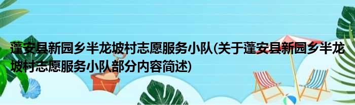 蓬安县新园乡半龙坡村志愿服务小队(关于蓬安县新园乡半龙坡村志愿服务小队部分内容简述)