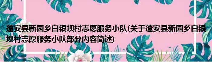 蓬安县新园乡白银坝村志愿服务小队(关于蓬安县新园乡白银坝村志愿服务小队部分内容简述)