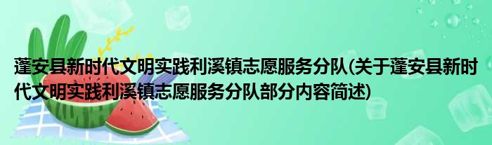 蓬安县新时代文明实践利溪镇志愿服务分队(关于蓬安县新时代文明实践利溪镇志愿服务分队部分内容简述)