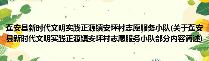 蓬安县新时代文明实践正源镇安坪村志愿服务小队(关于蓬安县新时代文明实践正源镇安坪村志愿服务小队部分内容简述)