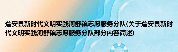 蓬安县新时代文明实践河舒镇志愿服务分队(关于蓬安县新时代文明实践河舒镇志愿服务分队部分内容简述)