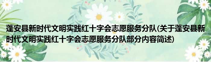 蓬安县新时代文明实践红十字会志愿服务分队(关于蓬安县新时代文明实践红十字会志愿服务分队部分内容简述)