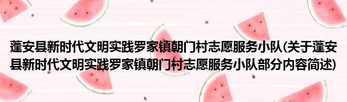蓬安县新时代文明实践罗家镇朝门村志愿服务小队(关于蓬安县新时代文明实践罗家镇朝门村志愿服务小队部分内容简述)