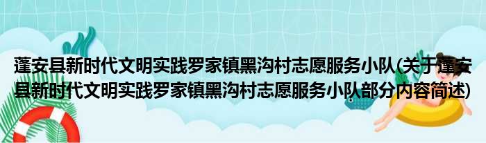 蓬安县新时代文明实践罗家镇黑沟村志愿服务小队(关于蓬安县新时代文明实践罗家镇黑沟村志愿服务小队部分内容简述)