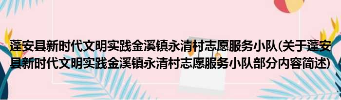 蓬安县新时代文明实践金溪镇永清村志愿服务小队(关于蓬安县新时代文明实践金溪镇永清村志愿服务小队部分内容简述)