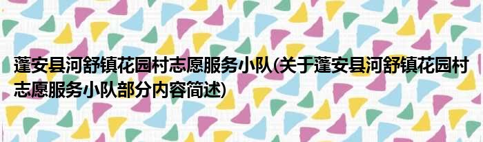 蓬安县河舒镇花园村志愿服务小队(关于蓬安县河舒镇花园村志愿服务小队部分内容简述)