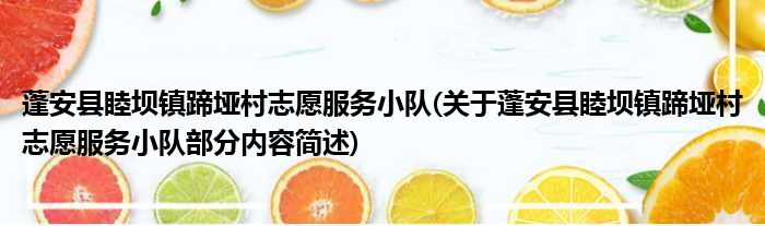 蓬安县睦坝镇蹄垭村志愿服务小队(关于蓬安县睦坝镇蹄垭村志愿服务小队部分内容简述)