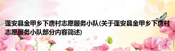蓬安县金甲乡下唐村志愿服务小队(关于蓬安县金甲乡下唐村志愿服务小队部分内容简述)