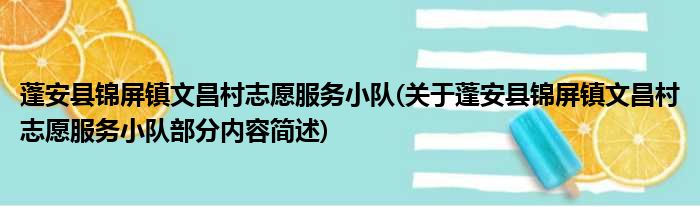 蓬安县锦屏镇文昌村志愿服务小队(关于蓬安县锦屏镇文昌村志愿服务小队部分内容简述)
