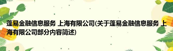 蓬易金融信息服务 上海有限公司(关于蓬易金融信息服务 上海有限公司部分内容简述)