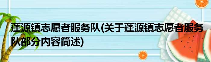 蓬源镇志愿者服务队(关于蓬源镇志愿者服务队部分内容简述)