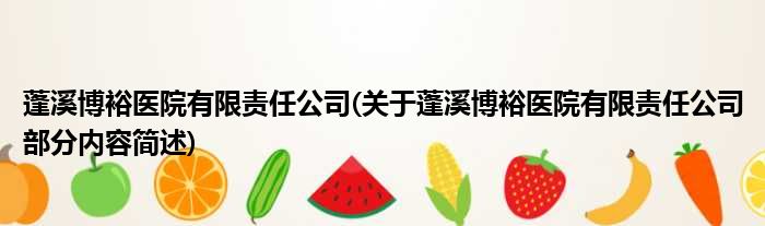 蓬溪博裕医院有限责任公司(关于蓬溪博裕医院有限责任公司部分内容简述)