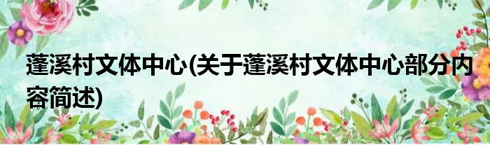 蓬溪村文体中心(关于蓬溪村文体中心部分内容简述)