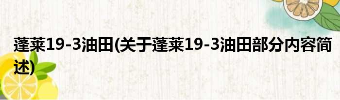 蓬莱19-3油田(关于蓬莱19-3油田部分内容简述)