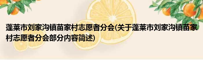 蓬莱市刘家沟镇苗家村志愿者分会(关于蓬莱市刘家沟镇苗家村志愿者分会部分内容简述)