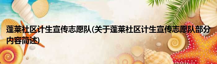 蓬莱社区计生宣传志愿队(关于蓬莱社区计生宣传志愿队部分内容简述)