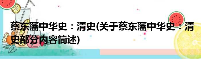 蔡东藩中华史:清史(关于蔡东藩中华史:清史部分内容简述)