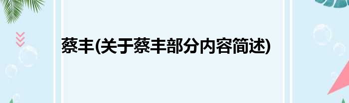 大家好,今天小方来说说一篇关于蔡丰,关于蔡丰部分内容简述的文章,那么现在就为大家来简单介绍下,希望对各位小伙伴们有所帮助。