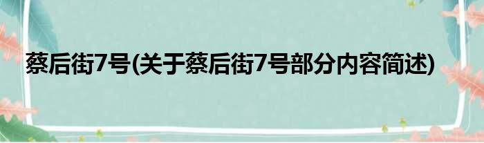 蔡后街7号(关于蔡后街7号部分内容简述)