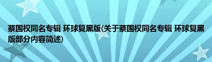 蔡国权同名专辑 环球复黑版(关于蔡国权同名专辑 环球复黑版部分内容简述)
