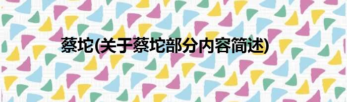 蔡坨(关于蔡坨部分内容简述)