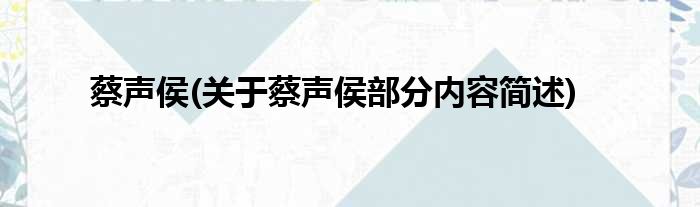 大家好,今天小方来说说一篇关于蔡声侯,关于蔡声侯部分内容简述的文章,那么现在就为大家来简单介绍下,希望对各位小伙伴们有所帮助。