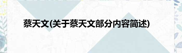 大家好,今天小方来说说一篇关于蔡天文,关于蔡天文部分内容简述的文章,那么现在就为大家来简单介绍下,希望对各位小伙伴们有所帮助。