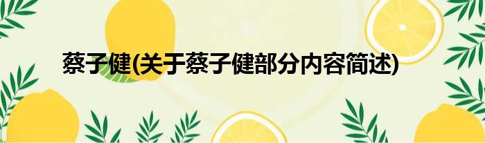 导读 大家好,今天小方来说说一篇关于蔡子健,关于蔡子健部分内容简述的文章,那么现在就为大家来简单介绍下,希望对各位小伙伴们有所帮助。