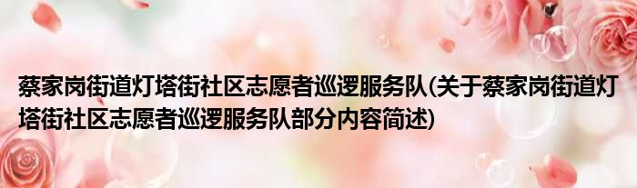 蔡家岗街道灯塔街社区志愿者巡逻服务队(关于蔡家岗街道灯塔街社区志愿者巡逻服务队部分内容简述)