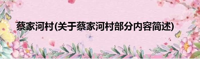 导读 大家好,今天小方来说说一篇关于蔡家河村,关于蔡家河村部分内容简述的文章,那么现在就为大家来简单介绍下,希望对各位小伙伴们有所帮助。