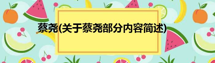 大家好,今天小方来说说一篇关于蔡尧,关于蔡尧部分内容简述的文章,那么现在就为大家来简单介绍下,希望对各位小伙伴们有所帮助。