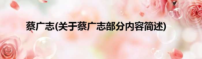 导读 大家好,今天小方来说说一篇关于蔡广志,关于蔡广志部分内容简述的文章,那么现在就为大家来简单介绍下,希望对各位小伙伴们有所帮助。