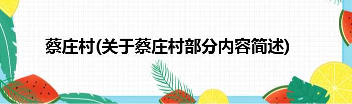 导读 大家好,今天小方来说说一篇关于蔡庄村,关于蔡庄村部分内容简述的文章,那么现在就为大家来简单介绍下,希望对各位小伙伴们有所帮助。