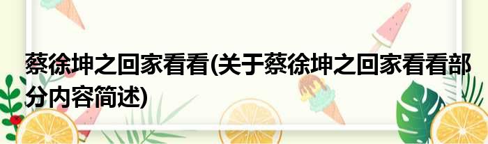 导读 大家好,今天小方来说说一篇关于蔡徐坤之回家看看,关于蔡徐坤之回家看看部分内容简述的文章,那么现在就为大家来简单介绍下,希望对各位小