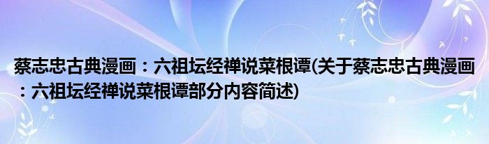 蔡志忠古典漫画:六祖坛经禅说菜根谭(关于蔡志忠古典漫画:六祖坛经禅说菜根谭部分内容简述)