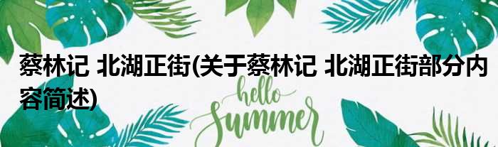 蔡林记 北湖正街(关于蔡林记 北湖正街部分内容简述)