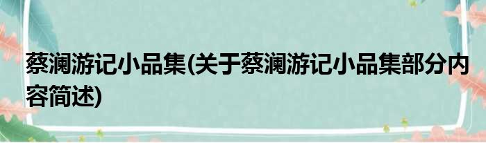 大家好,今天小方来说说一篇关于蔡澜游记小品集,关于蔡澜游记小品集部分内容简述的文章,那么现在就为大家来简单介绍下,希望对各位小伙伴们有所帮助。