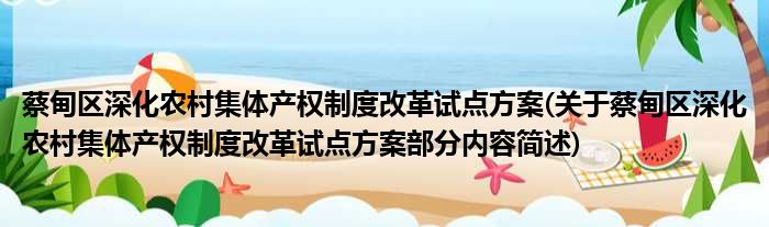 导读 大家好,今天小方来说说一篇关于蔡甸区深化农村集体产权制度改革试点方案,关于蔡甸区深化农村集体产权制度改革试点方案部分内容简述的文章