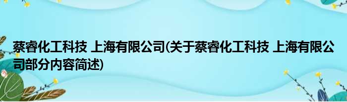 蔡睿化工科技 上海有限公司(关于蔡睿化工科技 上海有限公司部分内容简述)