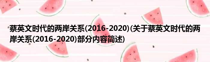 蔡英文时代的两岸关系(2016-2020)(关于蔡英文时代的两岸关系(2016-2020)部分内容简述)
