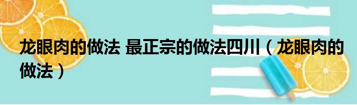 龙眼肉的做法 最正宗的做法四川(龙眼肉的做法)