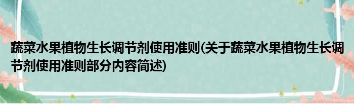 蔬菜水果植物生长调节剂使用准则(关于蔬菜水果植物生长调节剂使用准则部分内容简述)