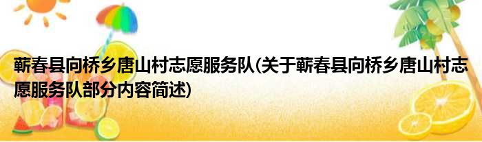 蕲春县向桥乡唐山村志愿服务队(关于蕲春县向桥乡唐山村志愿服务队部分内容简述)