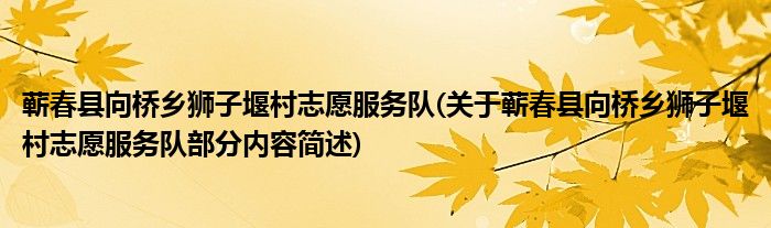 蕲春县向桥乡狮子堰村志愿服务队(关于蕲春县向桥乡狮子堰村志愿服务队部分内容简述)