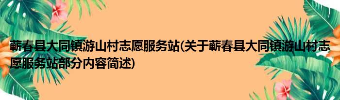 蕲春县大同镇游山村志愿服务站(关于蕲春县大同镇游山村志愿服务站部分内容简述)