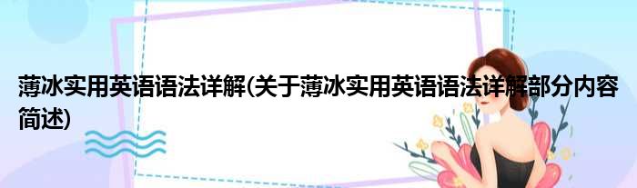导读 大家好,今天小方来说说一篇关于薄冰实用英语语法详解,关于薄冰实用英语语法详解部分内容简述的文章,那么现在就为大家来简单介绍下,希望