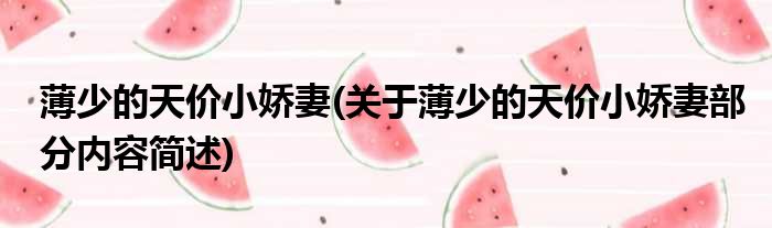 薄少的天价小娇妻(关于薄少的天价小娇妻部分内容简述)