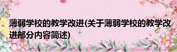 薄弱学校的教学改进(关于薄弱学校的教学改进部分内容简述)